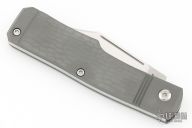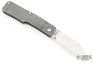 This Sharpshooter Jack is a gunstock slipjoint model by Jack Wolf Knives featuring a satin finished clip point blade with longpull. The handle has integral bead blast finish pinched and fluted titanium front and rear bolsters, jigged scales with a stainless spring. Comes with box, metallic tube with J. Gonzo artwork, leather slip, sticker and microfiber cleaning cloth. New from Maker.