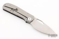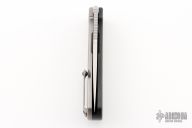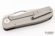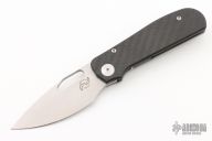 This Field Duty by Reate is a Liong Mah design, it features a satin finished blade with notched thumbrest and a thumbhole. The handle has a carbon fiber and blasted titanium frame with matching backspacer.   Includes a padded velcro case. Excellent Condition.