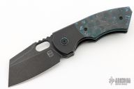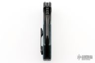 This Production Slim by Berg Blades features a DLC finished blade with notched thumbrest and thumbhole. The handle has a DLC titanium frame with DLC titanium backspacer, Arctic Storm Scales and pivot collars and Titanium tip up clip. Comes with original box, and COA. Nice detent, lockup and blade seating. Excellent condition.