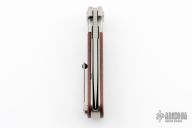 This Modern/Traditional blend offers everything you need in a blade – it’s made from Crucible S90V steel, which is renowned for its hardness and stain resistance properties; it has an integral titanium handle milled from 6AL4V Titanium, and it comes with Fat Carbon Mars Valley inlaid intricately weave patterns on the handle.