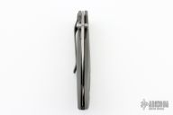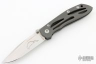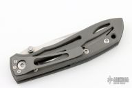 This Harsey Airframe by Gerger Knives features a satin finished spear point blade, notched thumbrest and dual thumbstuds. The handle has a skeletonized titanium frame black backspacer, bead blasted liner and tip down clip. Nice detent, lockup and blade seating. First Production Run. Comes with original box and papers. Has a couple light scuffs, otherwise excellent condition. #26/50 for the OKCA 2001