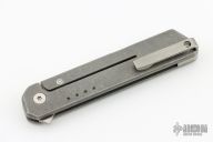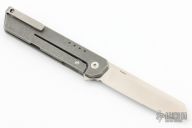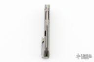 This iQ by Quiet Carry comes with a frame lock style locking mechanism and includes a stainless steel lock bar insert. The blade is a sheepsfoot style blade and you have a knife that excels with scoring and slicing tasks. Titanium scales, hardware, and stainless over travel stop. Has some light scuffs and scratches, otherwise excellent condition.