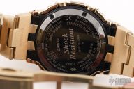 The DW-5000C is the original G-Shock model from 1983. The GMW-B5000 Series has inherited its characteristic square design and been given the full metal treatment along with upgraded features including smartphone linking. The GMW-B5000-1JF has been given a full-metal case by using a shock-resistant fine resin cushioning material inserted between the case and the sturdy stainless steel metal bezel. High-density mounting technology also allows the watch to maintain its size. The back of the watch features a solid Screw Lock Back and has been DLC treated for resistance to wear. Gold ion plating has been applied to the entire case and band for a beautiful color. Visibility too has been enhanced via use of a film solar cell and STN-LCD (liquid crystal). Function-wise, this model comes with Bluetooth® communications and can link with a dedicated app to obtain precise time information. The watch is also packed with practical features including a time correction system that uses standard time and frequency signals (Multi-Band 6), a reliable source of power in the form of Tough Solar technology, high-luminance Full Auto LED backlighting, World Time and day of the week display in six languages. This is a G-Shock model that stays true to its predecessor while undergoing further refinement through the application of a full-metal design.