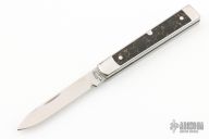 Visit this maker's website: Alsdorf Custom Cutlery. "I have enjoyed collecting knives for the past 20+ years. At times it is hard to obtain folders from makers that I like (because they are in such demand) so a few years ago decided to try and make a slipjoint since I have a machinist background. It was a lot of work but with the help of some makers that were very helpful in answering my questions about the proper way to build and finish a slipjoint I finally figured it out. A few of the many are Elvan Allred, Paul Myers, Jim Harrison (Seamus), Chuck Hawes, Jim Krause. I am a full time maker. I use the stock removal method and all my work is sole authorship (I do all work in my shop including heat treating, engraving and embellishments). Blade steels I use are 440C and CPM154. Bolsters and Liners are Integral and made from hardened 416 S.S.. I also use hardened 416 S.S. for my Interframes. I prefer to use natural materials for Handles and Inlays such as Pearls, Smooth and Jig Bone, Stag, Ironwood, etc."