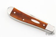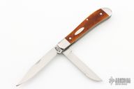 This Dogleg Trapper Mike Alsdorf features hand rub satin finished blades with nail nicks. The handle has nickel silver bolsters, bone covers, nickel silver escutcheon and pins, stainless steel spring. Includes leather slip pouch. Excellent condition. Dated 2011.