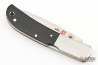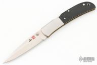 This Falcon Talon by Al Mar features a satin finished blade with false top edge and dual thumbstuds. The handle has stainless steel boslters, black linen micarta scales, brass liners, stainless steel backspacer. Comes with a leather slip sheath. Excellent condition.