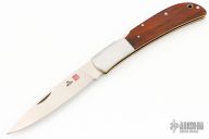 This Eagle Classic 1005C Folder by Al Mar features a satin finished blade with nail nick. The handle has stainless steel bolsters and cocobolo scales, brass liners and stainless steel backspacer. Comes with original brown leather sheath and original box. Excellent condition. First Production #171 of 200.