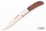 This Eagle Classic Talon Folder by Al Mar features a satin finished blade with false top edge and dual thumbstuds. The handle has stainless steel bolsters and cocobolo scales, brass liners and stainless steel backspacer. Comes with original brown leather sheath. Excellent condition. First Production #135 of 200.