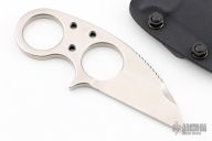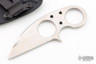 This Silent Soldier has a satin finished blade with notched thumbrest, .191" blade stock, 1.312" blade depth. Handle is satin finished. Excellent condition. Comes with kydex neck sheath.