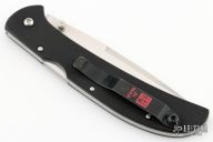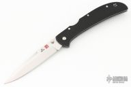 This Eagle Heavy Duty lockback folder by Al Mar Knives features a satin finished blade with dual thumbstuds. The handle has black G-10 scales and stainless steel liners and back-spacer, tip up reversible clip. Excellent condition. Comes with original box.