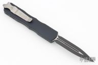 This Dirac OTF automatic by Microtech features a D/E black blade with a standard edges. The handle is black aluminum with stainless steel tip down clip. Serial number 2545 and dated 10/2019. Comes with original box and papers. Excellent Condition.