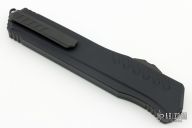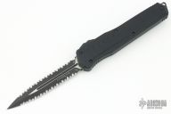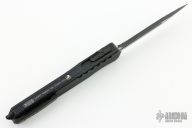 This Cypher OTF is a collaboration between Anthony Marfione and DC Monroe. It features a black double serrated blade with satin flats and notched thumbrest. The handle has a black anodized aluminum handle with all black hardware, and a black titanium tip down clip and a black titanium insert at the butt with lanyard hole. Comes with original box. Excellent condition. 07/2018 and #0425.