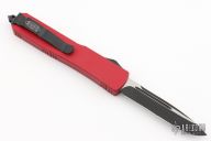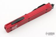 This Ultratech OTF automatic by Microtech features a S/E black blade with a partially serrated edge. Red Rooster aluminum contoured frame with black hardware and tip down stainless steel clip. Dated 2015 and s/n 024. Includes original box. Excellent condition.