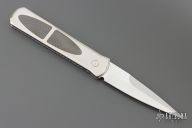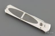 This Godfather from Pro-Tech Knives features a mirror finished spear point blade with swedge that was hand ground by WR Clark. The handle is comprised of a mirror polished titanium frame with carbon fiber inlays on the handle and the push button over barrel spacers. Includes original box. Excellent condition.