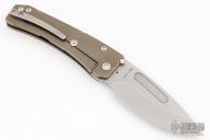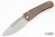 This Slim Midi Marauder from Medford Knife and Tool features a stonewashed drop point blade with thumb stud and recess. The handle is comprised of a milled, anodized, and tumbled titanium frame with matching tip up clip over anodized spacer pins with integrated lanyard hole. Excellent detent, lockup, and seating. Original case and papers. Excellent condition.
