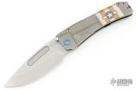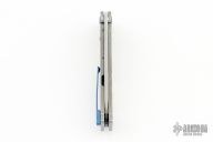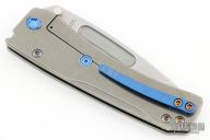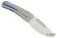 This Slim Midi Marauder from Medford Knife and Tool features a stonewashed drop point blade with thumb stud and recess. The handle is comprised of a milled, anodized, and tumbled titanium frame with matching tip up clip over a a satin finished anodized spacer pins with integrated lanyard hole. Excellent detent, lockup, and seating. Original case and papers. Excellent condition.