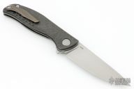 This F3 Flipper from Shirogorov has a tumble/polish finished flat ground spear point M390 blade with notched flipper. Handle has bronze carbon fiber scales, tumbled titanium backspacer, tip up clip and liners. Recessed lanyard bail. Dead center blade seating, excellent detent and lockup. Multi Row Bearing System. Comes with original box and COA. Has a few light scuffs, otherwise excellent condition.