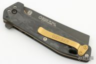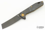 This BHQ Exclusive Fastball has a black coated CPM-20CV cleaver blade with a marbled carbon fiber handle.