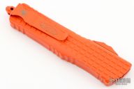 The Microtech Combat Troodon's is one of the largest dual action OTFs (Out The Front) knives available today, the Combat Troodon is the larger version of the Microtech Troodon. Hitting the ruler at almost 10 inches in total length with a 4 inch blade the combat troodon is a formidable battle ready tool, featuring CNC cut jimping on all faces of the handle and a larger slider for easy firing and retracting of the blade while wearing gloves.