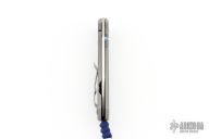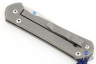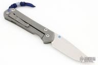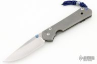 This Large Sebenza 21 by Chris Reeve features a stonewashed blade with a single anodized thumbstud. The frame is bead blasted titanium with matching tip up clip. Nice detent, lockup and blade seating.  Comes with a black leather Chris Reeve Sheath and a brown leather slip sheath. Has scratches and scuffs, otherwise good condition.