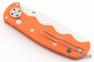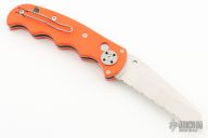 This Spyderco Autonomy features a satin finished fully serrated blade, H-1 Blade steel. The handle has orange G-10 scales, stainless steel liners, and a tip up reversible clip. Has some light scuffs, excellent condition otherwise. Not a factory second.