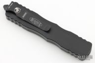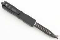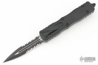 This Dirac OTF automatic by Microtech features a D/E black blade with partially serrated edges. The handle has a black aluminum with stainless steel tip down clip and hardware. Serial number 14908 and dated 06/2023. Includes the original box and papers.  Excellent Condition.