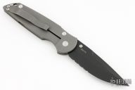 The custom TR-3 Integrity folders are built in very small batches from the highest possible quality materials. Solid titanium frames, custom hardware and thumb studs, the fit and finish is superb! Smooth one hand opening and the solid locking of the .125" titanium frame, even the pocket clips are custom made titanium. Comes with original box, sheath and papers. Has some scuffs and scratches, otherwise good condition.