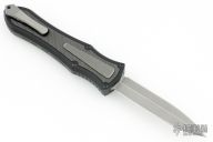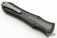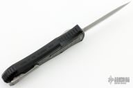This knife is a Deadlock Model C by Grant and Gavin Hawk. It has a double-edged stonewashed blade. The handle has a carbon fiber and black aluminum frame with a tip down spring clip, titanium. The thumb slide on the handle is also titanium and handle has titanium overlays. Grant and Gavin Hawk set out to create a double action OTF with no blade play.... They did it, NO blade play. Comes with original cloth case, card, balm and tool. Excellent condition.