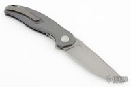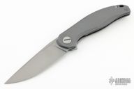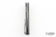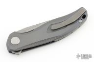 This Stellar by Shirogorov is from the first production. It has a bead blasted blade with notched flipper. The handle has an anodized and tumbled titanium frame, tumbled titanium backspacer and tip up clip with hidden screws. Rides on MRBS, nice detent, lockup and blade seating. Comes with original box and COA. Excellent condition.
