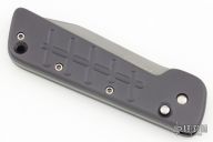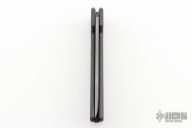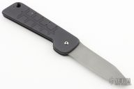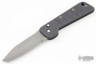 This Auto by Crawford Knives features a bead blasted chisel ground tanto blade. The handle has a black aluminum frame with a stainless steel backspacer. Nice action and lockup. Excellent condition.