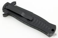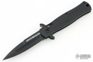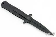 This collaboration between Darrel Ralph and Ryan Wilson of Wilson Tactical is the Stiletto Auto with black aluminum handle. Black coated blade with blood groove in the center and a ground but not sharpened top edge. Smooth firing auto with a strong lock up. Excellent condition.