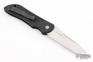 The AutoStryker features a satin finished tanto style blade with partial serrations and a notched thumbrest. The handle features a black aluminum frame with a stainless steel tip up pocket clip. Excellent condition.