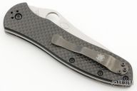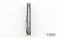 The Bradley Folder 2’s handle features exceptionally thick full skeletonized stainless steel liners, a high-strength LinerLock mechanism, and carbon fiber/G-10 laminate scales that are slightly smaller than the profile of the liners. This handle style offers a hand-filling grip and excellent tactile orientation, while still keeping the knife slim and easy to carry. A four-position hourglass clip allows a full spectrum of carry positions, including both tip-up and tip-down carry on both the left and right sides.