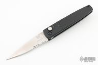 This Spike automatic by Benchmade Knives features a satin finished partially serrated blade and black anodized aluminum frame with tip up stainless steel clip. Excellent condition.