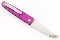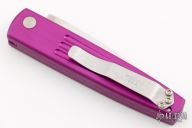 This Spike automatic by Benchmade Knives features a satin finished partially serrated blade and purple anodized aluminum frame with tip up stainless steel clip. Excellent condition.