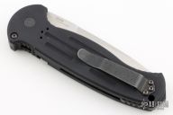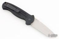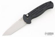 This 9052 AFO II Auto by Benchmade has a bead blasted tanto blade with a false top edge. Black anodized aluminum handle. Integrated safety system. Black stainless steel clip - 4 way reversible, and lanyard hole. Includes a Benchmade box. Has a few light suffs, otherwise excellent condition.