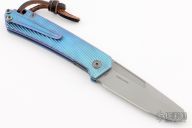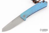 This OEM Slim is a Richard Rogers Design and features a bead blasted blade. The handle is milled and anodized titanium with blasted titanium backspacer, hardware and tip up clip. Nice detent, lockup and blade seating. Comes with original packaging. Excellent condition.