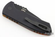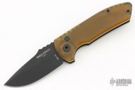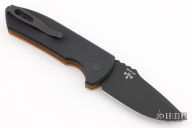 The Protech Knives SBR (Short Bladed Rockeye) is a utilitarian, compact, every-day-carry version of the Les George iconic Rockeye model, retaining the classic design in a smaller package. The SBR has the same American innovations as the Rockeye, featuring modern materials, high tech manufacturing, advanced coil spring mechanism, and quality American production. This version of the SBR has a DLC Black finished stainless plain edge blade, black anodized aluminum and Ultem handles and black hardware. Comes with original box and papers. Excellent condition.