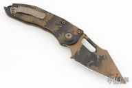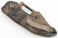 This Stitch Auto by Microtech Knives features a fully serrated coyote camo coated blade and false top edge, notched thumb and finger rests. The handle has an urban camo coated anodized and milled aluminum handle with a titanium backspacer, stainless steel hardware and clip, tip up carry, lanyard hole at the butt. Comes with original box and papers. S/N 093 and dated 12/22. Excellent condition.