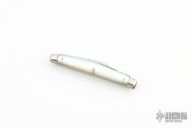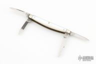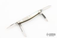 This Miniature 4-Blade Congress from George Wostenholm features polished blades with nail nicks. The handle has nickel silver bolsters and mother of pearl covers over brass liners and steel springs. Has some light scratches and patina, otherwise excellent condition for its age.