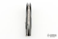 "Jason Brous began his efforts in knifemaking with the benefit of nearly 10 years of experience in CNC machining. His father owns a shop that specializes in the custom machining of high-precision components, mainly for the medical industry. Jason spent a lot of time in his father’s shop while growing up, and by his mid teens was actively helping out with production. His skills and knowledge steadily increased and by the time he was 20 he was a seasoned and very competent machinist. Jason's interest in knives actually began with art - specifically a style called “Bio-mechanical” - as practiced by one of his favorite artists, a Brazilian painter and tattooist named Lango. Biomechanical art (also called Biomech) is a surrealistic style of art that combines elements of machines and robotics with organic animal features. Intrigued by this style of art and its similarity to many fantasy knives, Jason figured that knifemaking would be a natural extension of his metalworking skills and an appropriate medium for his artistic ideas. Although he had no specific training in knifemaking, in 2010 he designed and made his first knife - a fantasy design with a Biomech flavor. Through persistent trial and error, Jason changed his style of knife design to focus on functional simplicity, while still maintaining a strong artistic signature. His early successes came in the form of a series of stout neck knives with dual finger-hole grips. Fans of these “Silent Soldier” neck knives began asking for other expressions of the design. Since then, Jason has created numerous variations including a clip point version, a tanto version and the very popular folder version called the Silent Soldier Flipper."