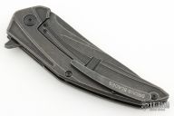 "Jason Brous began his efforts in knifemaking with the benefit of nearly 10 years of experience in CNC machining. His father owns a shop that specializes in the custom machining of high-precision components, mainly for the medical industry. Jason spent a lot of time in his father’s shop while growing up, and by his mid teens was actively helping out with production. His skills and knowledge steadily increased and by the time he was 20 he was a seasoned and very competent machinist. Jason's interest in knives actually began with art - specifically a style called “Bio-mechanical” - as practiced by one of his favorite artists, a Brazilian painter and tattooist named Lango. Biomechanical art (also called Biomech) is a surrealistic style of art that combines elements of machines and robotics with organic animal features. Intrigued by this style of art and its similarity to many fantasy knives, Jason figured that knifemaking would be a natural extension of his metalworking skills and an appropriate medium for his artistic ideas. Although he had no specific training in knifemaking, in 2010 he designed and made his first knife - a fantasy design with a Biomech flavor. Through persistent trial and error, Jason changed his style of knife design to focus on functional simplicity, while still maintaining a strong artistic signature. His early successes came in the form of a series of stout neck knives with dual finger-hole grips. Fans of these “Silent Soldier” neck knives began asking for other expressions of the design. Since then, Jason has created numerous variations including a clip point version, a tanto version and the very popular folder version called the Silent Soldier Flipper."
