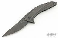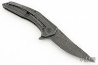 This Parallax from Brous Blades features an acid wash finish upswept blade with swedge, flipper and notched thumb rest. The handle is comprised of milled titanium scales over black posts. Matching tip up pocket clip. Excellent condition.