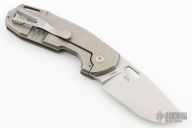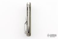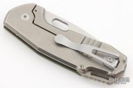 This Odino from Viper Knives is a Jesper Voxnaes design. It features a tumble finished drop point blade with thumb hole. The handle is comprised of green G-10 and tumbled titanium scales with a notched titanium backspacer/lanyard bail. Bead blasted stainless steel tip up clip is reversible for right/left hand carry. Great blade seating, detent and lock up. Excellent condition. Includes original box and papers.