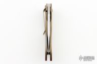 The Boker Thorn was designed by Jim Burke, it features a full titanium frame with barrel spacers, lanyard hole and tip down stainless steel clip. The satin finished blade has a notched thumbrest and a nail nick. #008/100. Has light scuffs otherwise the knife is in excellent condition.