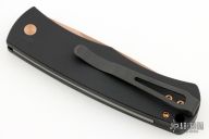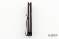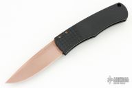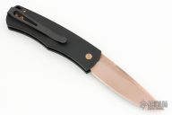 This Magic BR-1 Bolster Release Automatic from Pro-Tech Knives features a Rose Gold finished stonewashed 154-CM blade with swedge. The handle has a black aluminum frame with checkered bolster. Black coated stainless steel clip is positioned for tip up carry. Lanyard hole in the pommel. Comes with original box and papers. Excellent condition.