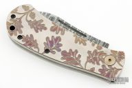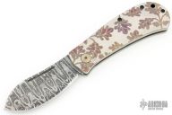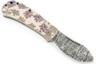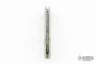 This knife by Ryan Johnson features an Upswept Damascus blade with two long pull nail nicks.  The handle has a titanium frmae and a Damascus backspring.  Includes a padded zippered case.  The blade is slightly off center, and it has a couple light scratches.  Excellent Condition.