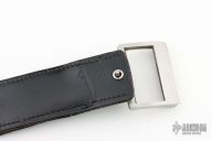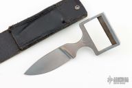 This is a belt buckle knife by Bowen USA. Has a drop point blade, .170" blade stock and .991" blade depth, integral construction. Comes with a brown leather 32" belt. Has some light scratches otherwise the knife is in excellent condition.