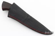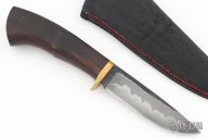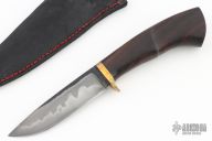 This Hunter by Last Knives features a hand forged hand rub satin finished blade with a nice hamon, .247" blade stock and 1.020" blade depth, hidden tang construction. The handle has a brass guard and rosewood grip. Comes with a black leather sheath and COA. New from maker.