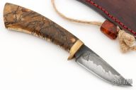 "I start making knives in the middle of 2017 just for fun. After I lost my job at the end 2017 I started to focus on making knives full time. I was learning from other makers and blacksmiths practicing and testing many types of steels. I primary use W2, O1, and sup9a (5160), secondary D2 (for corrosion resistance) and M2 for highly wear resistance. I chose W2, O1, and sup9a primary because its very easy to get very fine grain in the steel. That means it is very easy to sharpen but long lasting edge retention and upgraded toughness level. Those are the characteristics loved so much by chefs and hunters that need clean cutting knives. For handle material I like natural exotic wood and usually horn, also fossil ivory with non ferrous metal like brass, copper and some bronze."